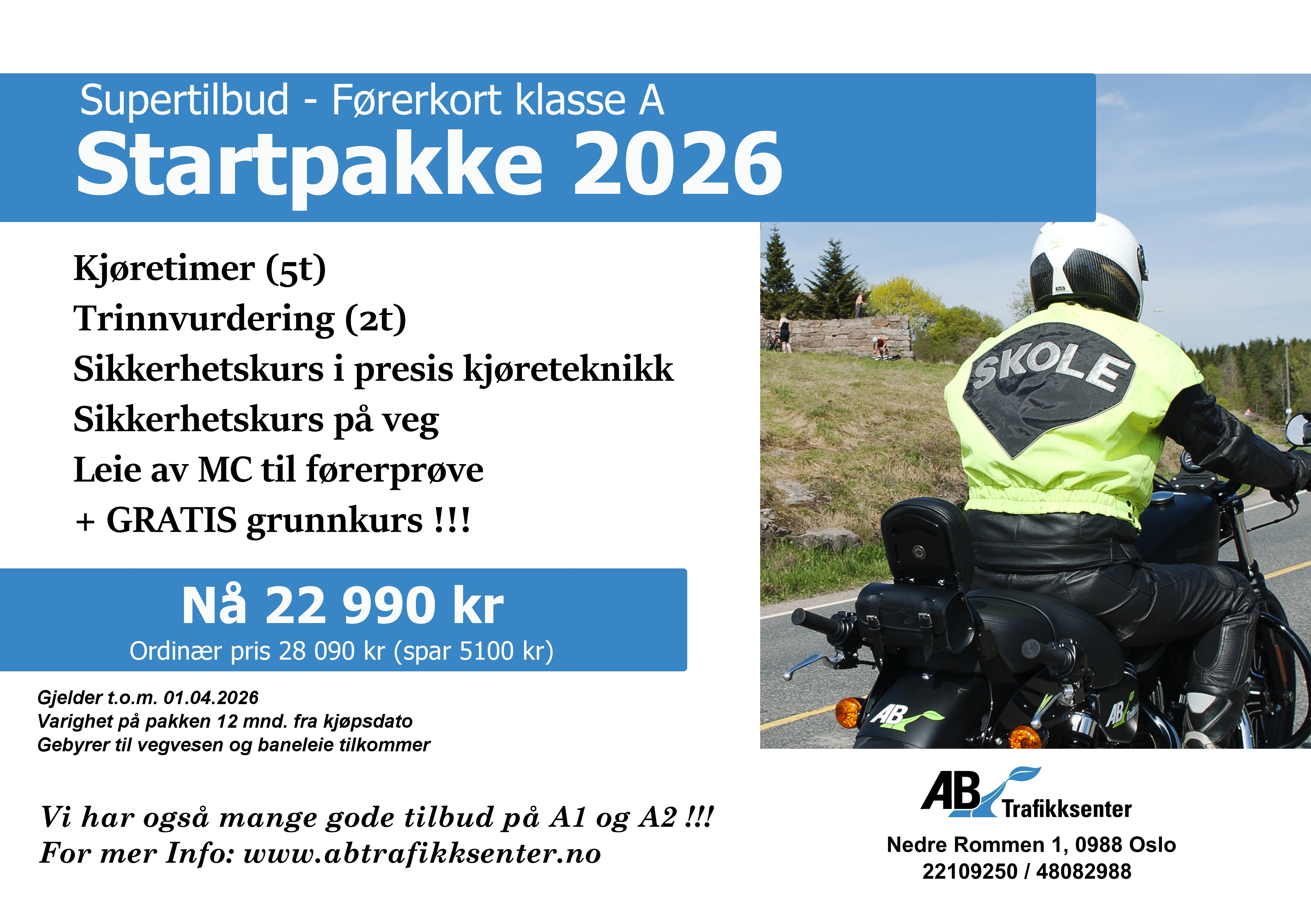 (Gebyrer til Statens vegvesen og NAF baneleie er ikke inkl. i pakken)