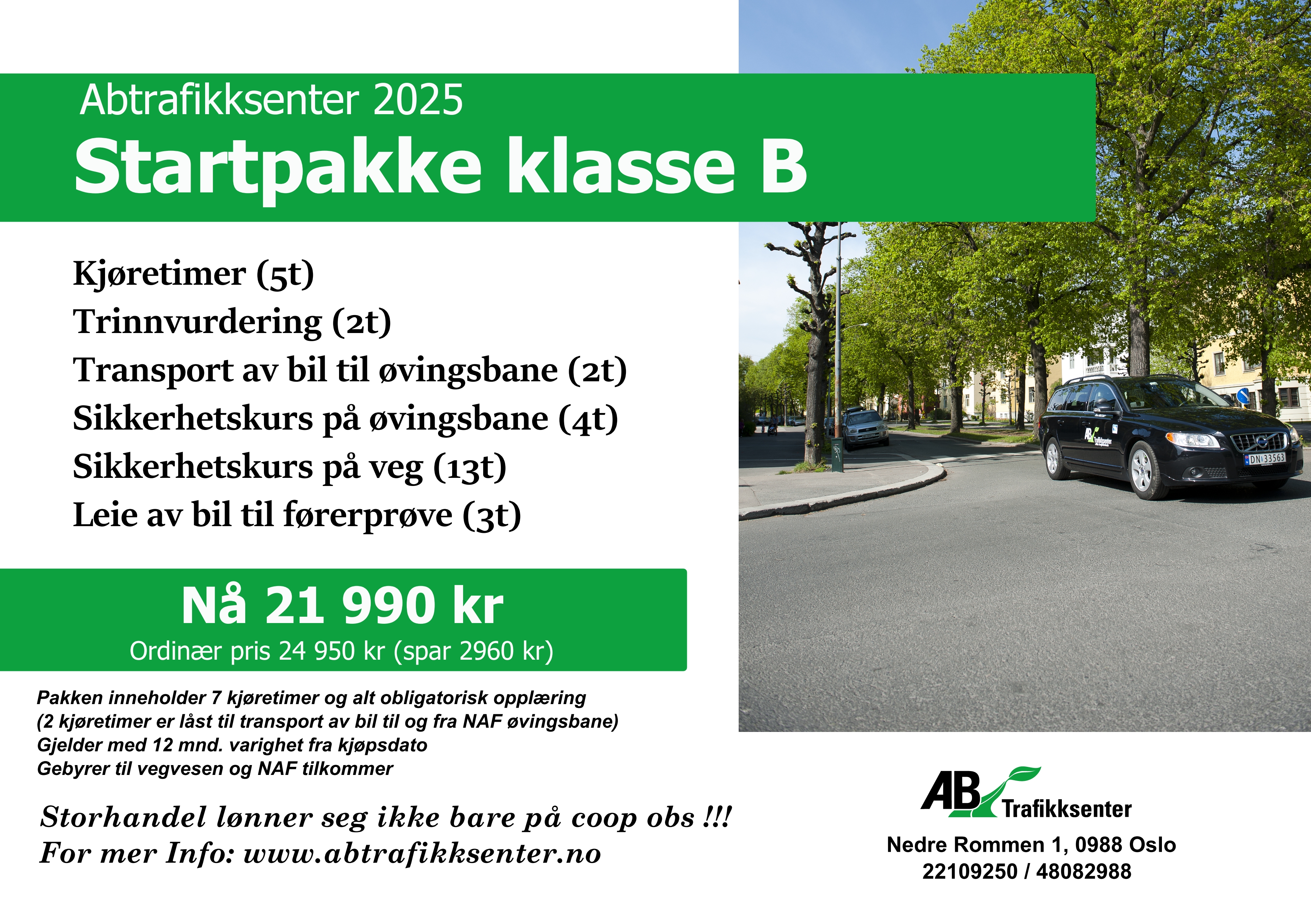 Nå kan du starte reisen med vår klasse B kampanjetilbud. Du får nå startpakken til 21 990 kr (spar 2960 kr).