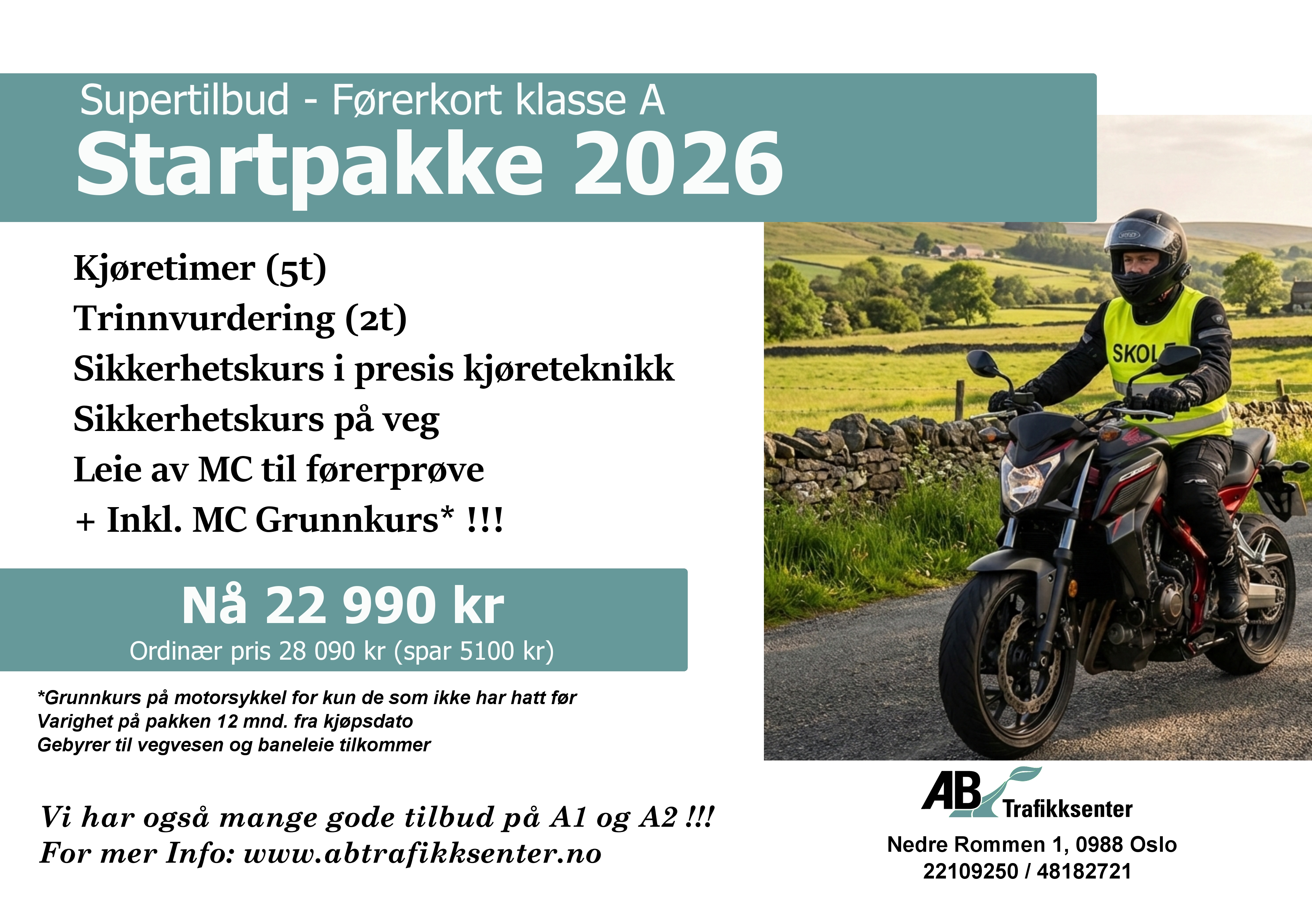 23. april / AB Trafikksenter AS avd. Rommen, Nedre Rommen 1, 0988 Oslo / 990,00Grunnkurs MC (Motorsykkel (A))